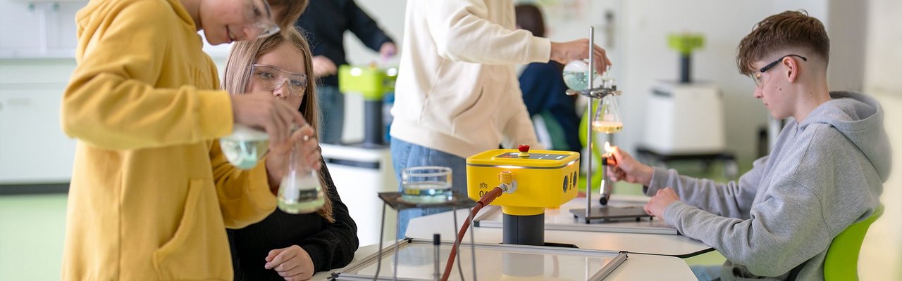 Mobile unit for supplying media such as electricity, WLAN, and combustible gas – “Science to go!” Supports self-directed learning and modern didactic concepts. Flexible use anywhere in a room or even outside traditional classrooms. Naturally, operation—for example with Bunsen burners using the Strom-Gas-Buddy—is subject to standard safety regulations and requires a room with a second escape route.